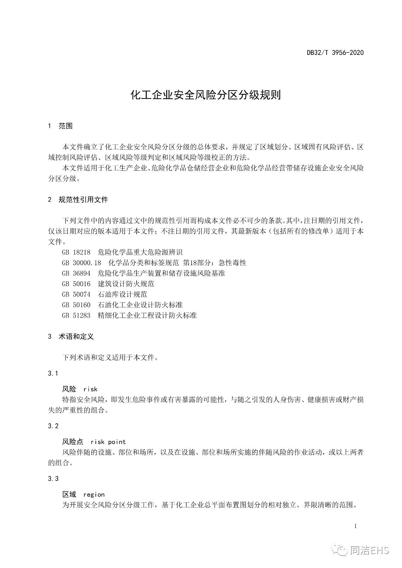 DB32T 3956-2020 化工企業(yè)安全風險分區(qū)分級規(guī)則(江蘇省標準),2020年1月15日起實施