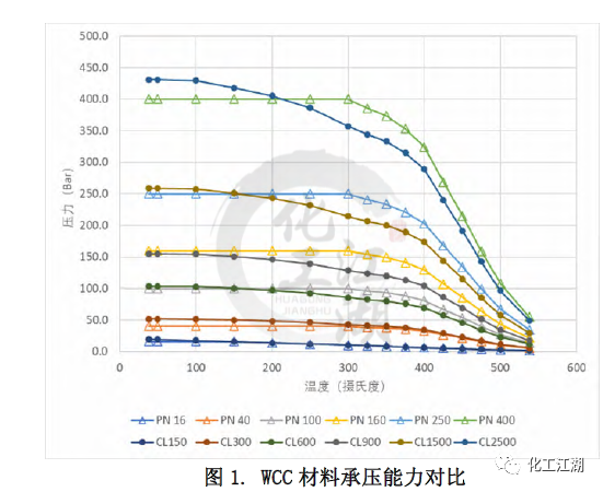本文采用了對(duì)比冷(常溫)工作壓的方法來(lái)近似推算出與ASME標(biāo)準(zhǔn)Class壓力等級(jí)最鄰近的EN標(biāo)準(zhǔn)PN壓力等級(jí)。EN12516-1標(biāo)準(zhǔn)中列出的所有材料的冷工作壓都是相同的。而ASME B16.34標(biāo)準(zhǔn)中列出的冷工作壓和材料相關(guān),故選取了其中一種較強(qiáng)材料(C12A)的冷工作壓用于對(duì)比。 通過(guò)對(duì)比得到每個(gè)ASME標(biāo)準(zhǔn) Class壓力等級(jí)對(duì)應(yīng)的最鄰近的EN標(biāo)準(zhǔn) PN壓力等級(jí),見(jiàn)表1。同時(shí),這樣的對(duì)應(yīng)關(guān)系也和閥門(mén)設(shè)計(jì)的通用做法一致。本文的管道內(nèi)徑,最小壁厚,材料承壓能力的對(duì)比都是依照表1中的對(duì)應(yīng)關(guān)系來(lái)進(jìn)行的。 1.2 材質(zhì)承壓能力的對(duì)比 無(wú)論是ASME標(biāo)準(zhǔn)還是EN標(biāo)準(zhǔn)都列出了一些ASTM標(biāo)準(zhǔn)材料的壓力溫度等級(jí),即材料在不同溫度下的承壓能力。本文選取了常見(jiàn)的閥體材料:碳鋼WCC,合金鋼 WC9和C12A進(jìn)行研究,來(lái)對(duì)比兩個(gè)標(biāo)準(zhǔn)中相同材料在標(biāo)準(zhǔn)壓力等級(jí)下的承壓能力的差別。 圖1和圖 2顯示了WCC材料的溫度壓力曲線和Class與PN的對(duì)比,可以看出: (1)對(duì)于ASME的 Class 150和EN12516-1 的PN16,當(dāng)溫度低于150攝氏度時(shí),EN標(biāo)準(zhǔn)規(guī)定的材料承壓能力低于ASME標(biāo)準(zhǔn)規(guī)定的材料承壓能力,且隨著溫度升高,差距逐漸縮小。當(dāng)溫度高于150攝氏度時(shí),兩個(gè)標(biāo)準(zhǔn)對(duì)相同材料的承壓能力的規(guī)定近乎相同。 (2)對(duì)于ASME的 Class 300和EN12516-1 的PN40,在整個(gè)溫度的范圍內(nèi),EN標(biāo)準(zhǔn)規(guī)定的材料承壓能力均低于ASME標(biāo)準(zhǔn)規(guī)定的材料承壓能力。當(dāng)溫度低于300攝氏度時(shí),隨著溫度升高,差距逐漸縮小。當(dāng)溫度高于300攝氏度時(shí),兩個(gè)標(biāo)準(zhǔn)對(duì)相同材料的承壓能力的規(guī)定差別趨于一致,約為-7%。 (3)對(duì)于ASME的 Class 900和EN12516-1 的PN160, 在整個(gè)溫度的范圍內(nèi),EN標(biāo)準(zhǔn)規(guī)定的材料承壓能力均高于ASME標(biāo)準(zhǔn)規(guī)定的材料承壓能力。當(dāng)溫度低于300攝氏度時(shí),隨著溫度升高,差距越來(lái)越大。當(dāng)溫度高于300攝氏度時(shí),兩個(gè)標(biāo)準(zhǔn)對(duì)相同材料的承壓能力的規(guī)定差別趨于一致,約為24%。 (4)還有一點(diǎn)值得注意的,除了PN16,其他PN壓力等級(jí)對(duì)應(yīng)的工作壓力在低于300攝氏度以下都是一樣的,而ASME等級(jí)對(duì)應(yīng)的工作壓力是隨著溫度升高持續(xù)下降的。 1.3 對(duì)閥體設(shè)計(jì)的指導(dǎo) 在實(shí)際設(shè)計(jì)過(guò)程中,無(wú)論是為了縮短新產(chǎn)品推向市場(chǎng)的時(shí)間,還是從產(chǎn)品標(biāo)準(zhǔn)化、成本優(yōu)化的角度去考慮,盡可能多地將已有的設(shè)計(jì)或者零部件(尤其是需要開(kāi)發(fā)鑄造模具的閥體)應(yīng)用到新的產(chǎn)品中,都是設(shè)計(jì)師不可避免要考慮的問(wèn)題,可以采用同一個(gè)閥體鑄件的設(shè)計(jì)來(lái)滿足ASME 標(biāo)準(zhǔn)和EN標(biāo)準(zhǔn)的要求呢?為了解答這個(gè)問(wèn)題,本文選取了三個(gè)不同壓力等級(jí)-低、中、高的十二個(gè)具體實(shí)例,各項(xiàng)參數(shù)的對(duì)比結(jié)果如表3 所示。 (1)低壓ASME Class 300與 EN PN40 從表3中差別的百分?jǐn)?shù)可以看出,在兩個(gè)尺寸下,滿足ASME標(biāo)準(zhǔn)和EN 標(biāo)準(zhǔn)的管道內(nèi)徑和最小壁厚的差別,均小于5%。就是說(shuō),用同一個(gè)閥體設(shè)計(jì)來(lái)滿足兩個(gè)標(biāo)準(zhǔn)的設(shè)計(jì)要求是可以接受的。同時(shí)從圖2中可以看出,閥體常見(jiàn)材料在這兩個(gè)等級(jí)的承壓能力差別也較小,10%以內(nèi)。因此,兩個(gè)設(shè)計(jì)可以在類似的實(shí)際工況中應(yīng)用。 (2)中壓ASME Class 900與 EN PN160 對(duì)于中壓下尺寸為DN100和DN200的兩組設(shè)計(jì),從差別的百分?jǐn)?shù)可以看出,雖然每組中要對(duì)比的兩個(gè)設(shè)計(jì)的管道內(nèi)徑非常接近,但是所要求的最小壁厚卻相差較多,超過(guò)了20%。在這種情況下,實(shí)踐中也是可以用同一個(gè)閥體設(shè)計(jì)來(lái)滿足兩個(gè)標(biāo)準(zhǔn)的設(shè)計(jì)要求的,但是需要評(píng)估由此帶來(lái)的對(duì)最小壁厚要求較小的閥體的成本的影響。另一方面,從圖2中可以看出,閥體常見(jiàn)材料在這兩個(gè)等級(jí)的承壓能力差別較大,在有些溫度下差別達(dá)到20%。這種材料承壓能力上的差別和最小壁厚的差別是一致的。 (3)高壓ASME Class 2500與EN PN400 對(duì)于高壓下尺寸為DN100和DN200,閥門(mén)的管道內(nèi)徑和最小壁厚存在著巨大差別,30%-50%,故采用同一個(gè)閥體設(shè)計(jì)來(lái)滿足兩個(gè)標(biāo)準(zhǔn)的設(shè)計(jì)要求是不合理的。 還有另外一個(gè)因素需要在閥體設(shè)計(jì)時(shí)考慮,那就是閥體兩個(gè)端口之間的長(zhǎng)度。ASME B16.34中指出可以按照ASME B16.10來(lái)確定端口對(duì)端口尺寸。EN12516-1 并未提及端口對(duì)端口尺寸,但歐標(biāo)體系中EN558規(guī)定了端口對(duì)端口的尺寸??紤]到端口對(duì)端口尺寸并非標(biāo)準(zhǔn)強(qiáng)制要求,故本文未