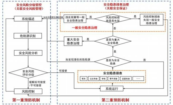 如發(fā)現(xiàn)重大安全隱患,應(yīng)按照8.3的要求進(jìn)行治理;如發(fā)現(xiàn)一般安全隱患,應(yīng)當(dāng)按照8.4的要求進(jìn)行治理;排查中如發(fā)現(xiàn)潛在的危險(xiǎn)源,應(yīng)回溯到“7.2系統(tǒng)描述”進(jìn)行定位和梳理,適時(shí)啟動安全風(fēng)險(xiǎn)分級管控流程識別危險(xiǎn)源并管控相關(guān)風(fēng)險(xiǎn);如評估發(fā)現(xiàn)的問題不屬于上述任何一類,可選擇是否改進(jìn)后,回到系統(tǒng)運(yùn)行環(huán)節(jié)。