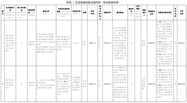 (2)對重大安全隱患除填入安全隱患清單外,還應(yīng)建立專門的信息檔案,包括重大安全隱患的治理方案、復(fù)查驗(yàn)收報(bào)告以及報(bào)送情況等各種記錄和文件。