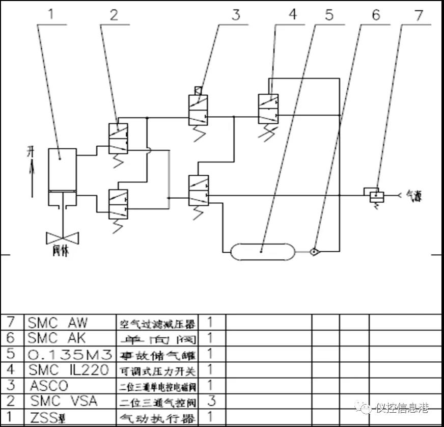 是不是這種閥門最好呢?也不一定。這種結構的閥門最大的弊端是,不好判斷彈簧作用力的可靠性,當聯(lián)鎖需要緊急啟動,而動力風又中斷的緊急狀態(tài)下,彈簧如果乏力,那閥門會無法關閉或者打開。而彈簧是否可靠,在正常聯(lián)鎖測試中不好判斷。 常見切斷閥的結構就這三種模式,了解這三種氣缸結構就了解閥門的故障狀態(tài)了嗎?這還遠遠不夠。氣缸的動作模式完全由外部氣動元件來控制,而氣控元件的組合根據(jù)聯(lián)鎖的需要千變?nèi)f化。舉幾個簡單的例子: 1、單缸單作用在動力風中斷時一定會關閉或者打開嗎? 大部分聯(lián)鎖閥門在動力風中斷時要求關閉或者打開,但是聯(lián)鎖的設計一定是可用性和可靠性的綜合考慮。在考慮安全性的同時一定會考慮可用性,且有時候的動力風中斷并非全部中斷,而是局部動力風管線的受損。關閉某個切斷閥會造成較大的經(jīng)濟損失或者給生產(chǎn)帶來次生安全風險。這種情況下,一般閥門上會帶有鎖止閥,其作用就是當動力風壓力降到一定的設定值時,切斷動力風,氣缸中的壓力始終推動彈簧使得閥門保持原有狀態(tài)。加上鎖止閥就變?yōu)镕L。什么情況下用到這種閥呢,比如大型的氣體凈化項目,當下游生產(chǎn)裝置發(fā)生故障時,需要緊急切斷上游供料閥門,下游裝置全部停工,可能會造成幾千萬的經(jīng)濟損失。但是動力風暫時故障,能在短時間恢復,倒不如設置成FLC。