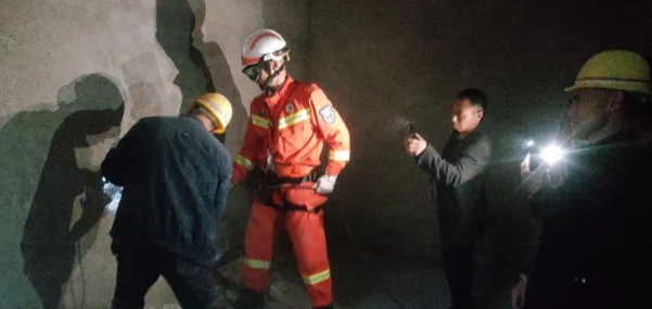 “在建居民樓為框架結(jié)構(gòu),墻壁尚未硬化加固處理過,可否比照兩人被困點,從屋內(nèi)向外鑿出一個洞來,將他們救進來?”救援現(xiàn)場,有人提出了一個大膽的想法。后經(jīng)綜合評估商定,現(xiàn)場救援人員覺得此方案可行。