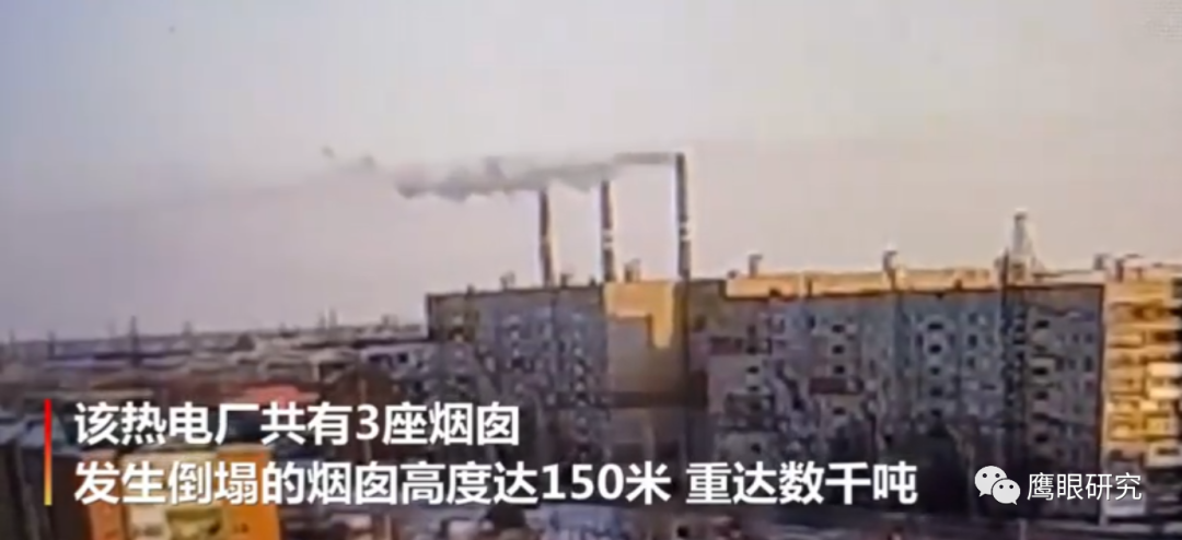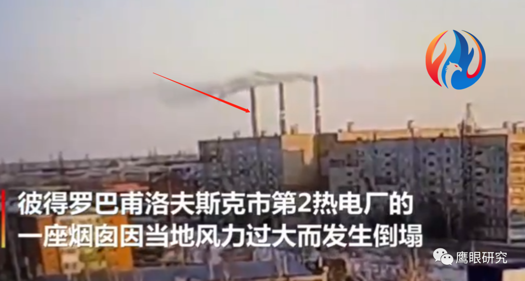 哈薩克斯坦熱電廠煙囪因大風(fēng)倒塌